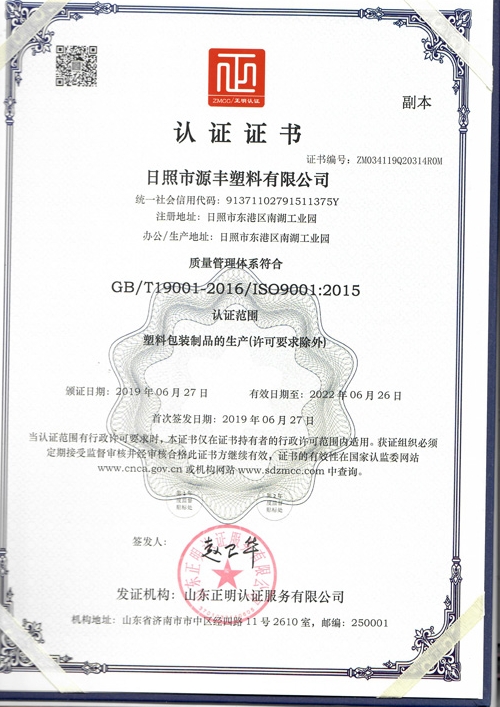 山東源豐塑料股份有限公司成立于2005年,占地幾十余畝,建筑面積1.5萬平方,總投資1億,普通車間工人100名,高級(jí)5名,紙塑袋生產(chǎn)能力5000萬條,日均15萬條,主要生產(chǎn)紙塑復(fù)合袋,閥口袋,彩印袋,方底三層紙袋,吹膜袋,多層紙袋,紙塑邊縫袋等系列。